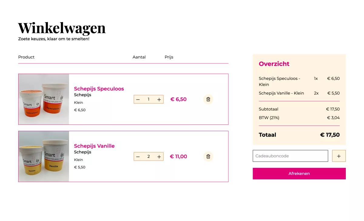 For my final school project, we were tasked with redesigning and developing a full website for a company. The process began with pitching ideas in duos to two potential clients; based on the results, project groups of four were formed. I was placed in a new team assigned to Smart‑IJs, a fictitious ice cream company.